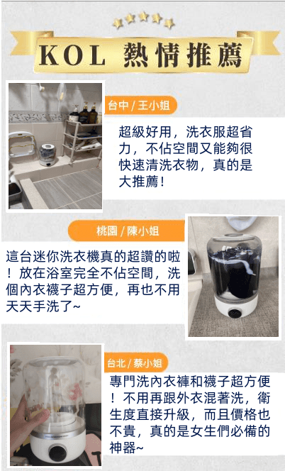 4分鐘前玉如阿姨獨家推出TECO迷你洗衣機,一鍵啟動解放雙手含銀離子持久抑菌,小巧機身功能齊全整機防水防潮防濕 - 內衣內褲分開洗 限時特惠 二入組NT$1990