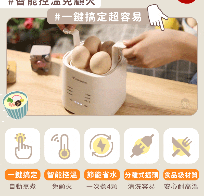 20分鐘前Pink Bunny智能煮蛋機智能控溫烹煮,營養美味輕鬆上桌 - Pink Bunny智能煮蛋機1入組 NT$1091