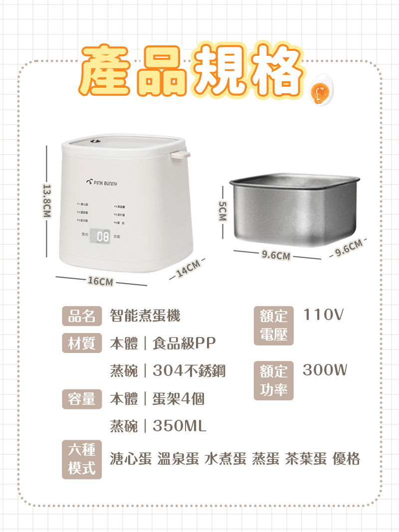 12分鐘前Pink Bunny智能煮蛋機智能控溫烹煮,營養美味輕鬆上桌 - Pink Bunny智能煮蛋機1入組 NT$1091